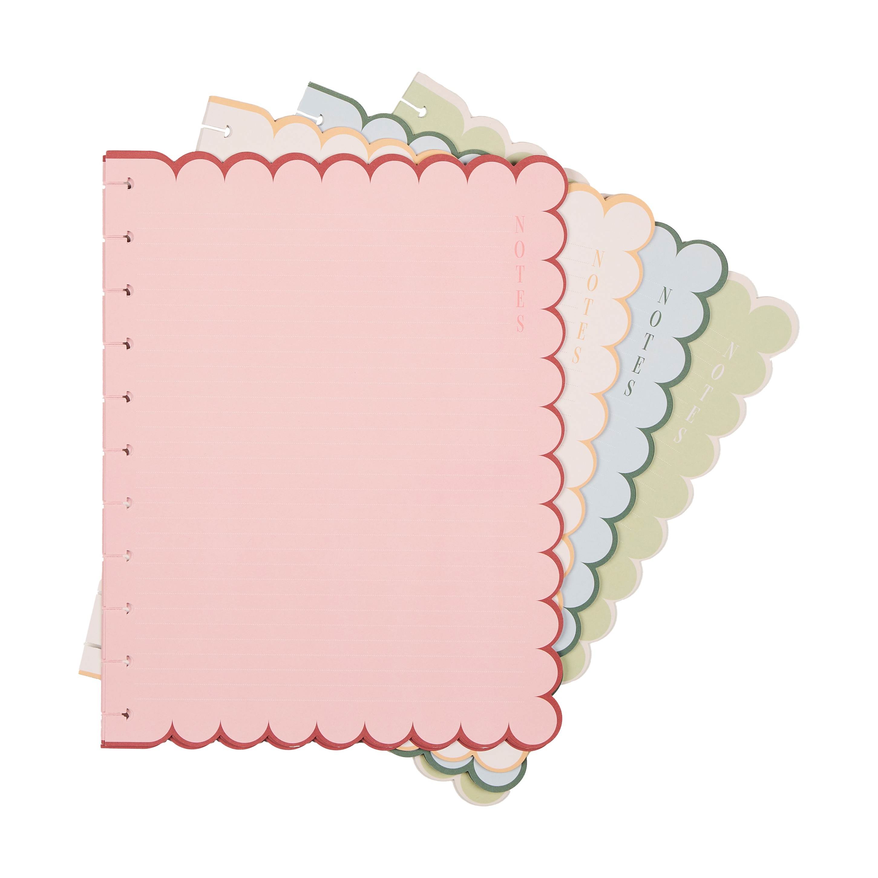 - 40 sheets of Big size (8" x 11") filler paper with dotted lines and scalloped edging