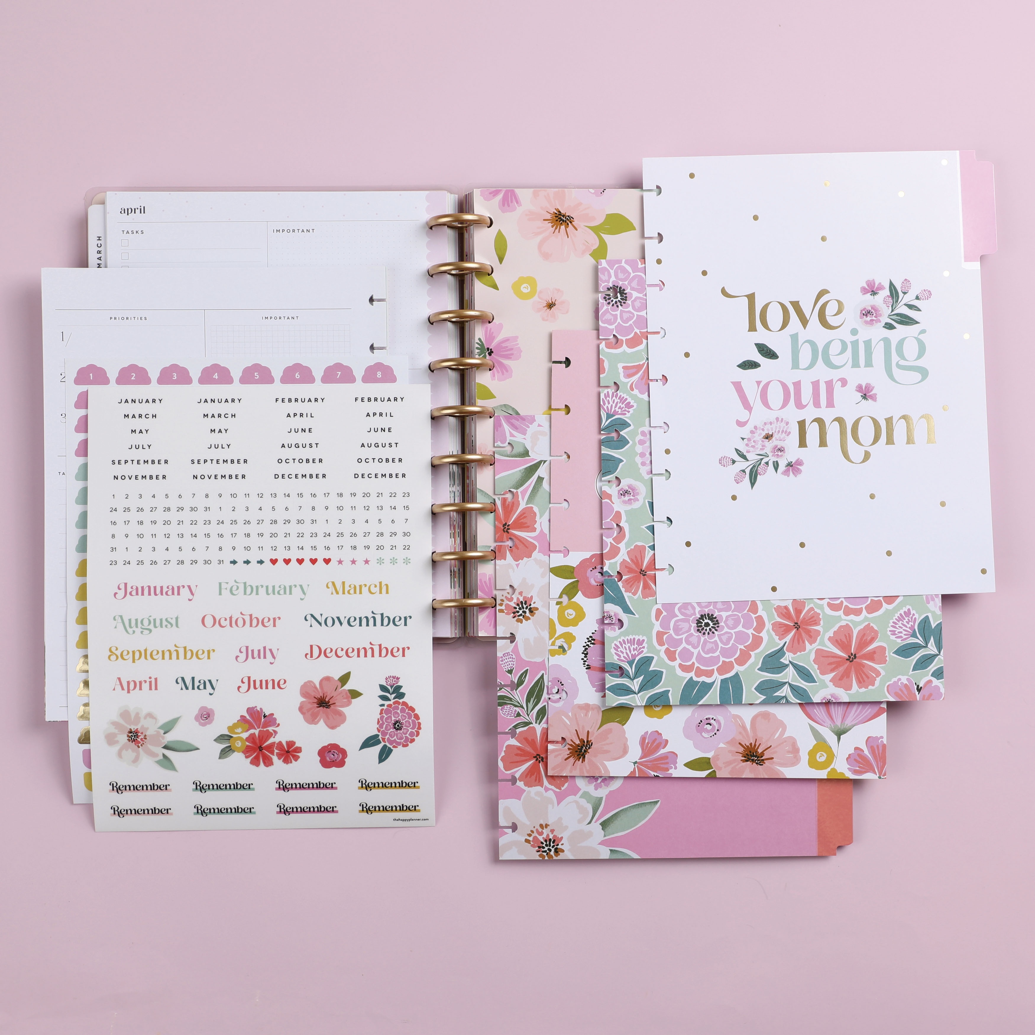 Love your role as a mom. This extension pack will extend the life of your planner. It includes 4 months of undated monthly calendars and weekly spreads in a dashboard layout. Decorate your planner with 4 dividers and a pocket folder. Label your pages with the month stickers and decorate your spread with inspirational quotes.