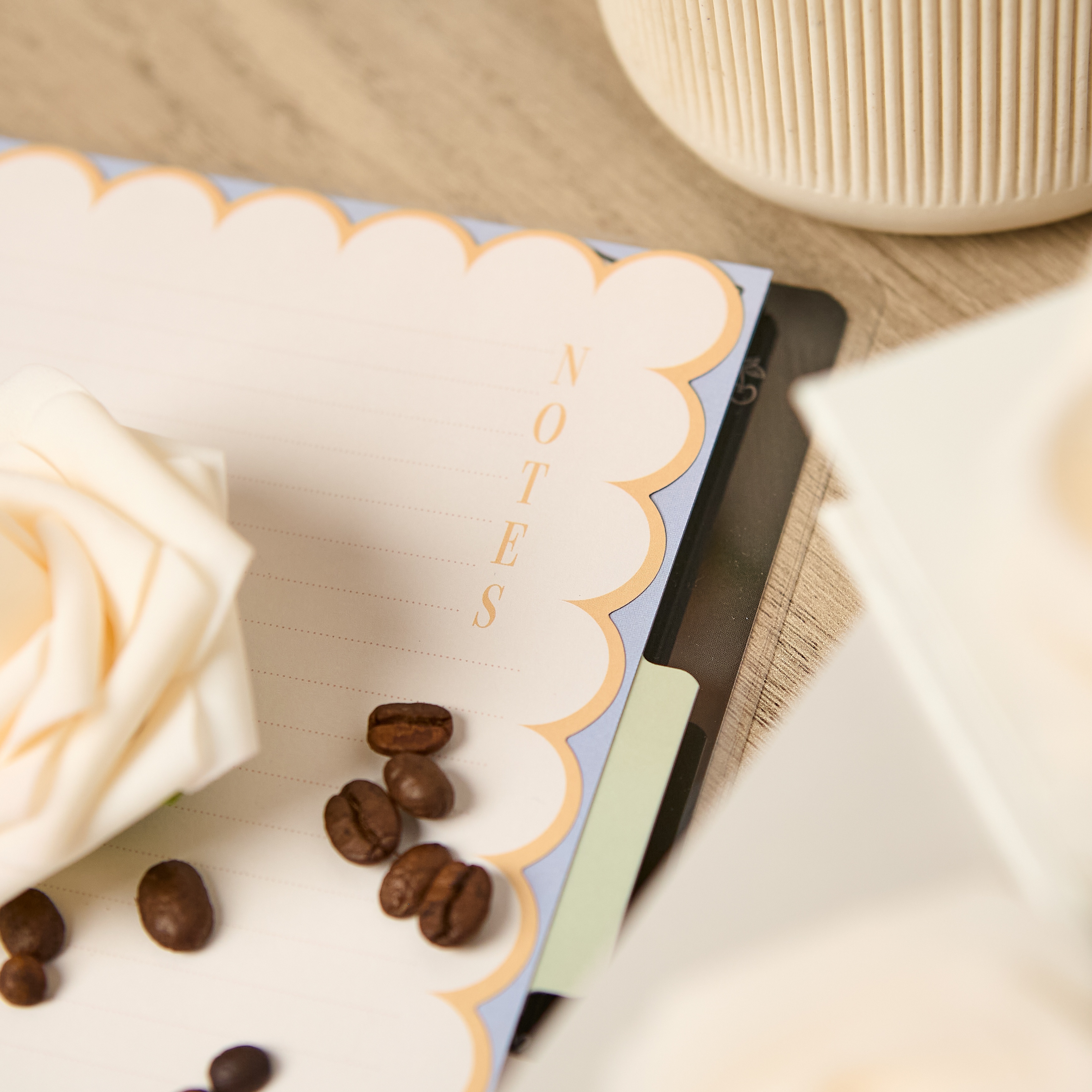 Add a touch of charm to your notes and plans with the Café Coquette filler paper. Designed with sweet scalloped edges and dotted lined pages, this set makes everyday planning feel like a cozy coffee date.