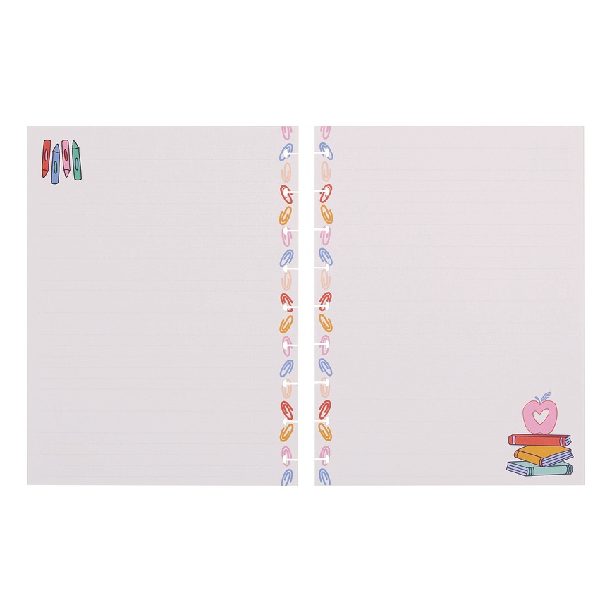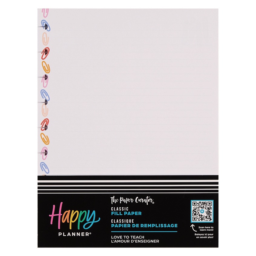 Lesson plans, student notes, or daily reflections—whatever’s on your mind, this Love to Teach filler paper is here to help you write it all down with style. Designed with educators in mind, each sheet features dotted lined pages with cute, classroom-themed accents (hello, rainbow books and bright apples!). Whether you're planning your next unit or jotting down inspiration, these Classic size pages slip right into your Happy Planner for a seamless fit.