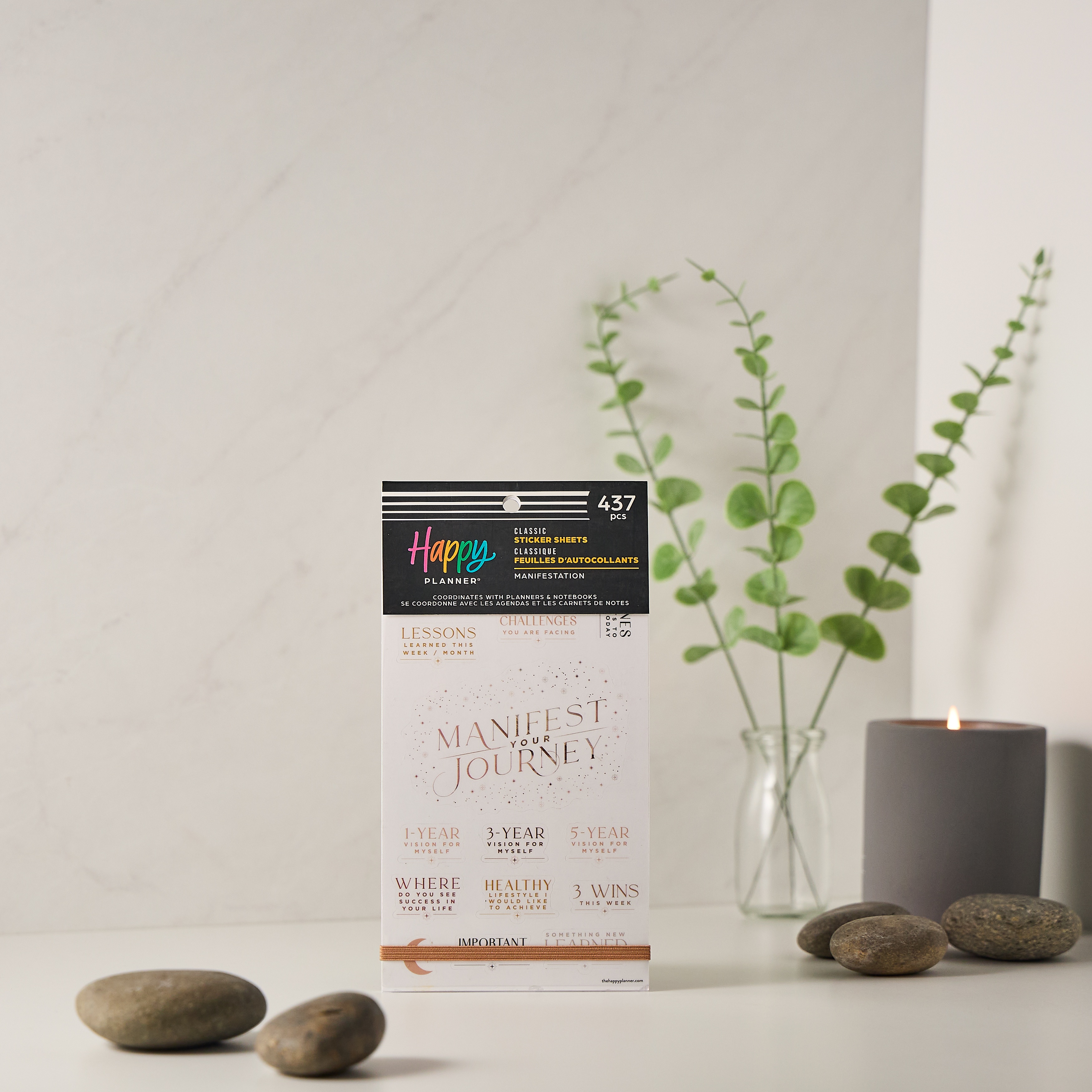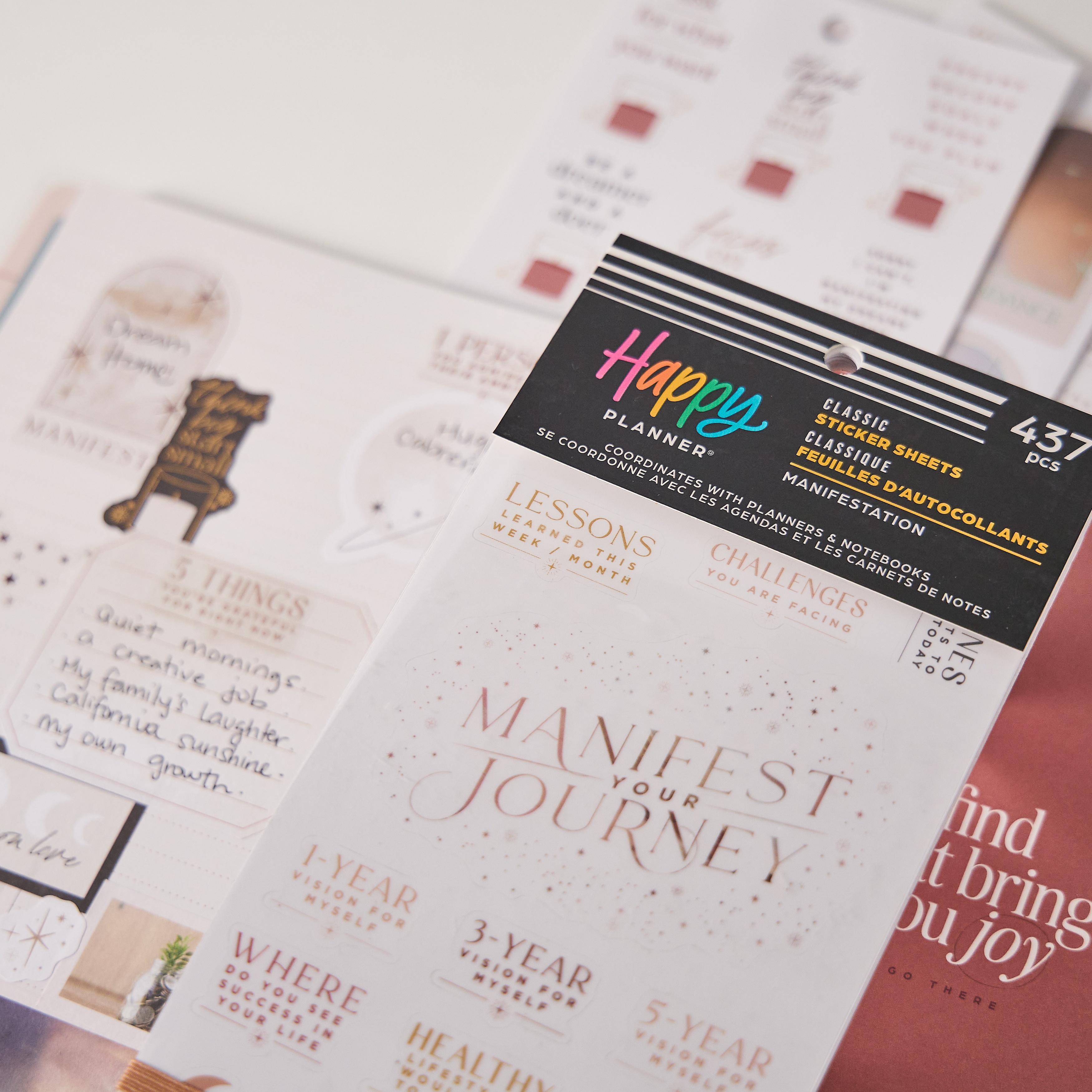 Set your intentions and bring your goals to life with the Manifest Value Pack Stickers. Filled with inspiring prompts and mindful reminders, this sticker pack was designed to help you reflect, visualize, and take steps toward the life you want to create. With elegant neutral tones and celestial details, these stickers add both style and intention to your planner spreads.